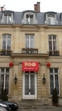 看見駐法代表處門口那"中華民國精采一百"的感覺似乎更為親切...